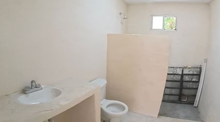 Departamento en renta en colonia centro de una habitación con un baño completo y balcón compartido en segunda planta sin muebles únicamente con ventiladores.