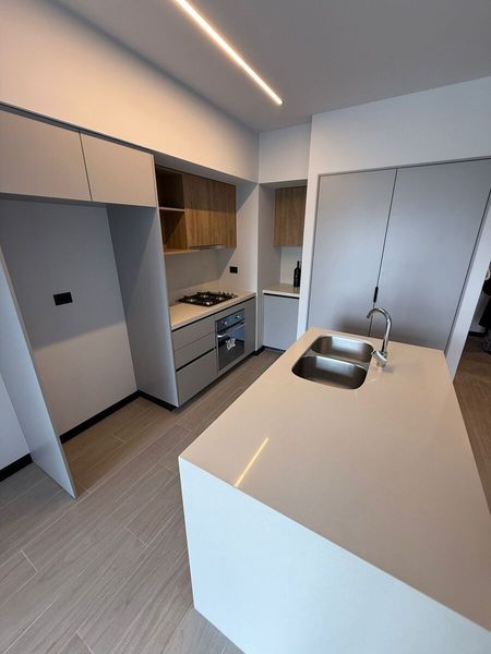 • Cocina equipada con barra de cuarzo, parrilla y tarja marca Smeg