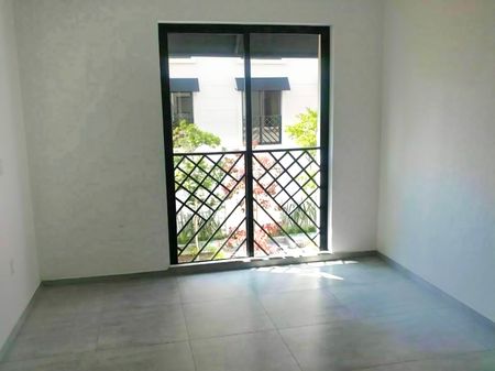 Acabados modernos, cocina con barra desayunadora cubierta de granito, sala y comedor con vista al patio central y con terraza.