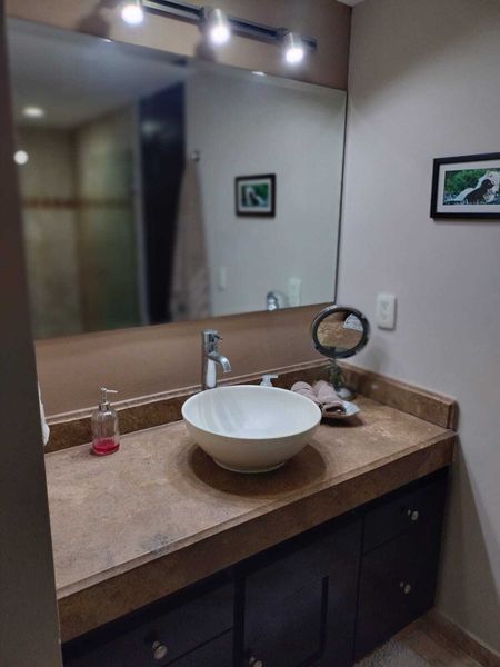 El departamento cuenta con una espaciosa recámara principal que incluye una cómoda cama King Size con Memory Foam. Además, tiene una acogedora recámara secundaria con una cama matrimonial y una cama individual. En el cuarto de lavado encontrarás una práctica cama individual junto a un centro de lavado nuevo.