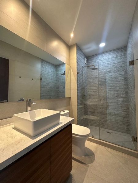 Equipado con: refrigerador, microondas, centro de lavado, abanicos de techo, mini splits inverter, lavavajillas, enfriador de vinos, mueble de televisión, base para televisión, persianas.
