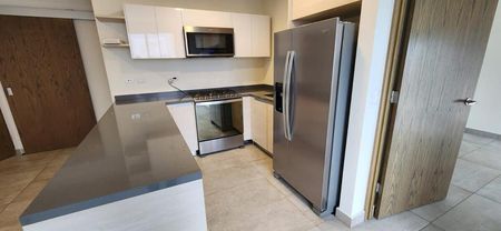 Equipado departamento de 85 m2 en Torre Kima Valle Pte. Cuenta con 2 recámaras, 2 baños completos y 2 cajones de estacionamiento. Equipado con muebles empotrados, 3 minisplits, canceles de cristal y persianas Blackout. Cocina con estufa de gas, horno, microcampana Whirpool y refrigerador. Incluye centro de lavado. Cuenta además con bodega en planta baja.