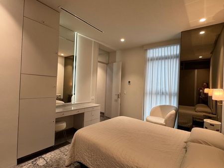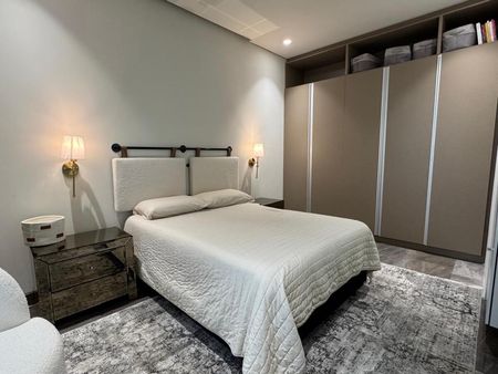 1 Recámara completamente amueblada, closet de pared y vanity.
