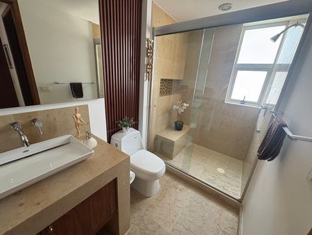 Fraccionamiento Villaflorence. Hermoso dpto. con finos acabados, balcones en sala comedor y habitaciones, cocina con barra de granito, asoleado, vistas increíbles, son 3 habitaciones con vestidor amplio y baño solo que los dueños quitaron una para hacer mas amplia la sala pero es muy facil levantar de nuevo las paredes y ya cuenta con su baño y vestidor propio. Tiene 2 lugares de estacionamiento en bateria. Cuarto de servicio con baño y área de lavado. El edificio tiene alberca al aire libre, parque infantil, jardin, gimnasio, cancha de futbol, jardin de mascotas. El fraccionamiento cuenta con gimnasio, salón de fiestas y cancha de paddle.