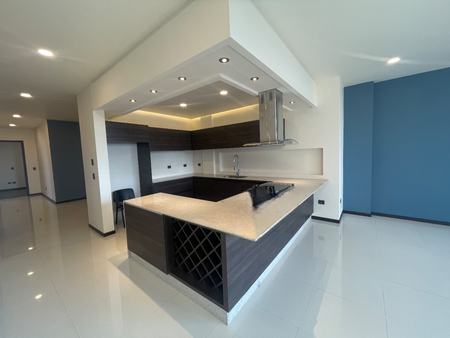 En su interior, este departamento cuenta con espacios amplios y finamente decorados, que incluyen un elevador privado, una sala de estar elegante, un comedor espacioso, una cocina moderna y funcional, dos recámaras con vestidor y una sala de TV para relajarse.