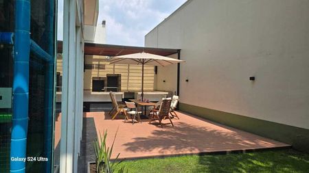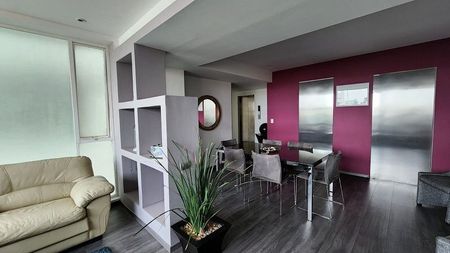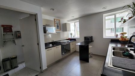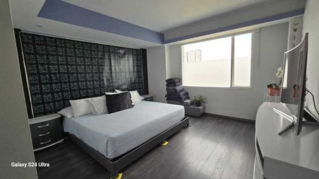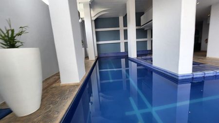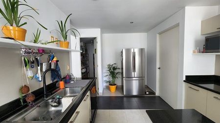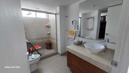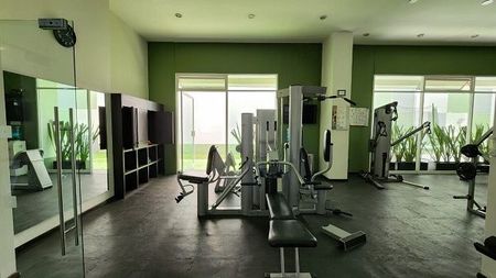 Áreas comunes: Jardín común con asador, salón de fiestas, salón de jóvenes, ludoteca, gimnasio, alberca techada y jacuzzi, Business Center, sala de cine. Vigilancia 24 horas.