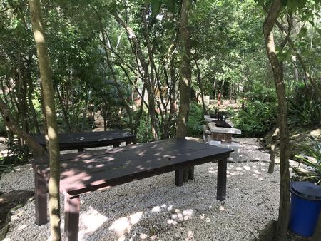 Área con mesas y asadores