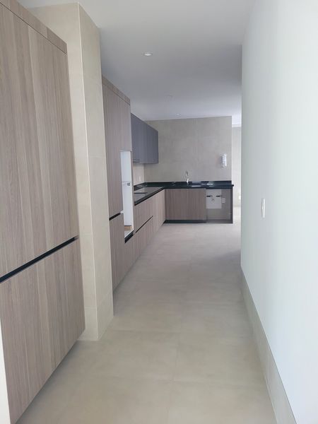 El departamento tiene area social con un amplio espacio que se extiende hasta la terraza, cocina cerrada, area de lavado, cuarto de servicio con baño completo y tres estacionamientos.