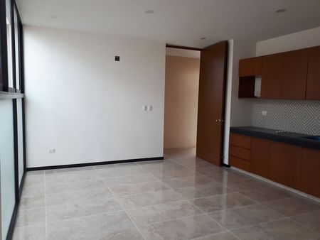Departamento en renta en Tiara Temozon. Consta de 1 habitación, 1 baño, closets vestidos, gavetas en cocina, calentador, estufa y 1 aire a condicionado. Área social. Cuota de mantenimiento incluida.