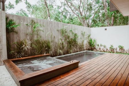 Cada departamento cuenta con sus amenidades internas, como amplias terrazas y albercas privadas. Todo con el fin de habitar un espacio que te permite disfrutar del recurso principal de Tulum, su naturaleza exterior.