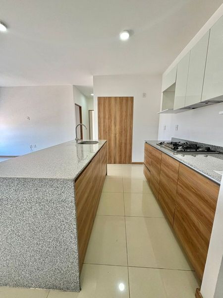 Cuenta con 2 recamaras cada una con closet, y la principal con vestidos y baño completo, sala comedor, cocina con cubierta de granito, área de lavado, baño completo de visitas y cochera para 2 autos en sótano.