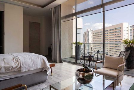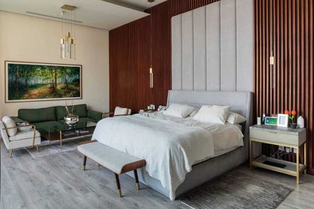 Suite principal con sala, balcón, closet doble, baño doble con vapor y jacuzzi.