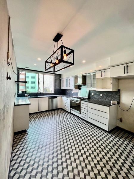 Sala comedor amplios con linda vista, linda cocina con espacio para pequeño desayunador muy iluminada con buena ventilación y alacena medio baño de visitas, family room. Todo el departamento tiene calefacción hidronica. Área de lavado y cuarto de servicio