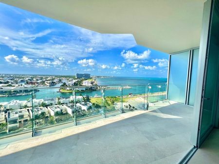 Exclusivo departamento de tres recamaras frente a la playa y espectaculares vistas al Mar Caribe e Isla Mujeres / Exclusive three-bedroom beachfront apartment and spectacular views of the Caribbean Sea and Isla Mujeres.