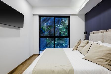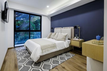 Bajo un concepto inmobiliario All-in-One, los departamentos inteligentes de SkyPark Amores cuentan con automatización en persianas y otras amenidades inteligentes, además de acabados de lujo a elegir según tu gusto. Ubicado en una zona estratégica de la Ciudad de México y diseñado con una arquitectura de vanguardia, en SkyPark Amores disfrutarás de una vida en equilibrio con la ecología, recreación y tecnología para llevar un estilo de vida saludable y sostenible.