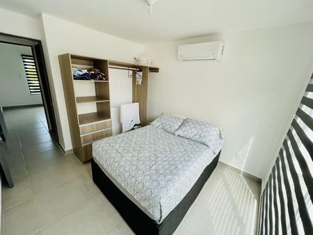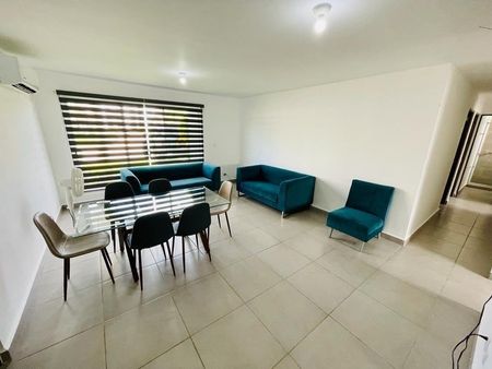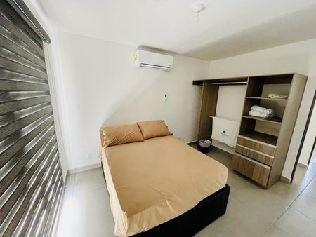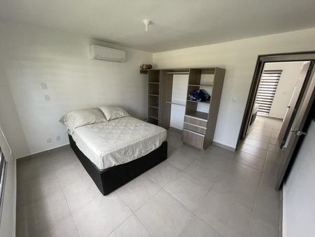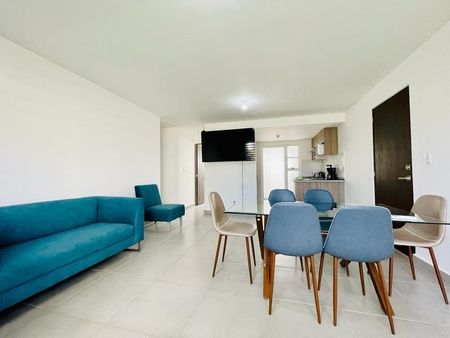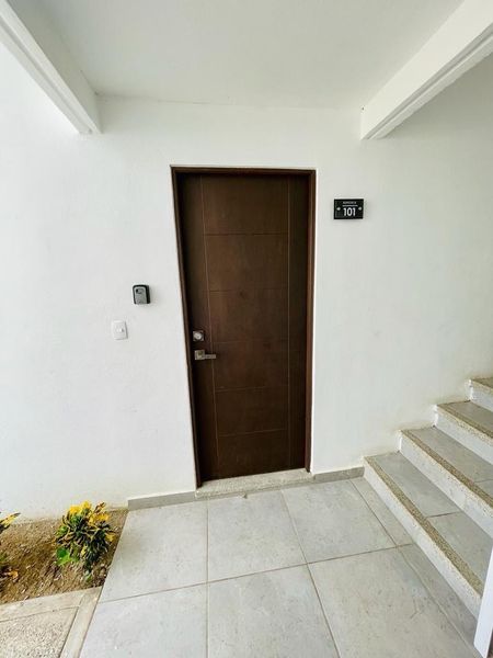 El departamento cuenta con 4 recámaras, 2 baños, sala, comedor y cocina. Las propiedades se entregan con piso cerámico, puertas de madera y aire acondicionado en la sala-comedor y recámara principal