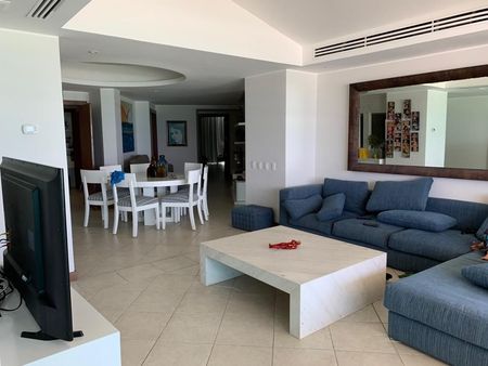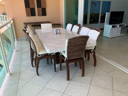 El departamento cuenta con sala, comedor, sala de TV, cocina integral, cuarto de servicio, cuarto de lavado, la recamara principal con vestidor y baño completo, acceso a la terraza y vista al mar, las recamaras secundarias con baño completo y closet.