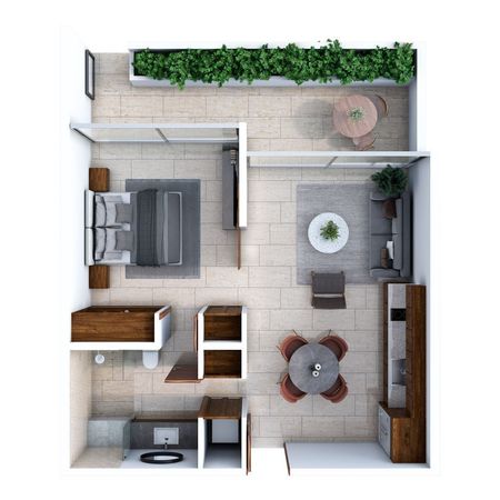 1 Recámara con jardinería y balcón.