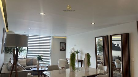 El departamento cuenta con tres amplias recámaras, cada una con su propio estilo acogedor, tres baños completos y dos lugares de estacionamiento, brindando comodidad y privacidad para toda la familia. La sala y el comedor han sido cuidadosamente decorados para ofrecer un ambiente cálido y sofisticado.