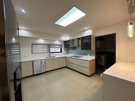 Cocina equipada con estufa de inducción, campana, horno, microondas, lavavajillas, refrigerador duplex, electrodomésticos Kitchen Aid