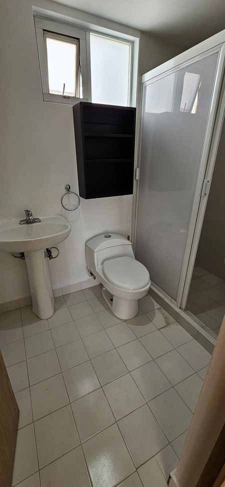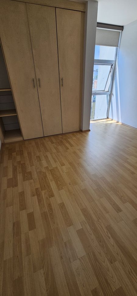 Recámara principal con closet y baño, recámara junior con closet, baño para recámara junior y visitas, baños con cancel, estancia sala-comedor, cocina integral con campana, piso laminado nuevo en recámaras, piso cerámico en baños y cocina, área de lavado con centro de lavado (lavadora/secadora) interfón, en torre de 20 departamentos en 5 niveles con elevador, salón de usos múltiples, jardín, cisterna, vigilancia 24/7, ingreso controlado con tarjetas digitales, CCTV,