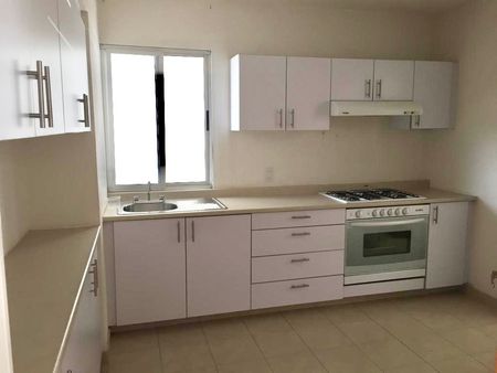 2 recámaras con opción a 3, 2 baños completos, sala de tv, sala, comedor, cocina equipada, área de lavado, medio baño de servicio, 2 lugares de estacionamiento, portón eléctrico