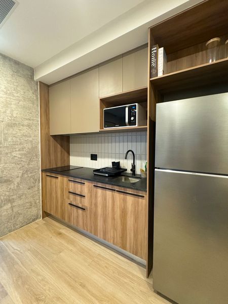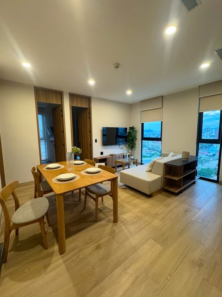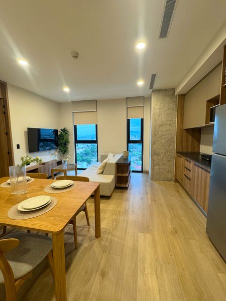 Con 49.25 m², cuenta con dos habitaciones, un baño completo, sala-comedor, cocina equipada, cuarto de lavado y aire acondicionado. Se entrega totalmente amueblado y listo para habitar, además de incluir un cajón de estacionamiento.