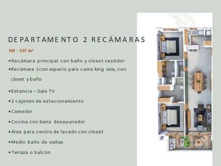• Recámara 1 con espacio para cama king size, con