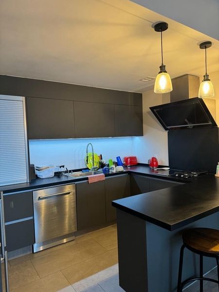 Cocina Equipada: La cocina ha sido diseñada pensando en la funcionalidad y estilo. Con alacena y península, cubiertas de granito, y espacio para un refrigerador de doble puerta, es ideal para aquellos que aman cocinar y compartir momentos en familia.