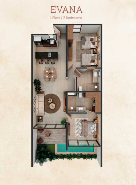 DEPARTAMENTO EN VENTA EN TULUM "PADMA" MODELO EVANA