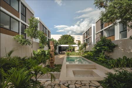 Conjunto de departamentos que consolida su presencia con 27 exclusivas unidades enclavadas en el próspero corazón de Temozón Norte, una de las áreas de mayor desarrollo y plusvalía. Cada departamento, un santuario de 2 habitaciones, se erige como un lugar donde se entrelazan la sofisticación y las amenidades que invitan a la introspección, creando un espacio propicio para vivir, explorar y redescubrir la esencia interior.