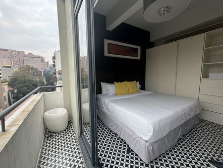 Ubicado en el corazón de Colonia Cuauhtémoc, en calle tranquila, silenciosa y arbolada.