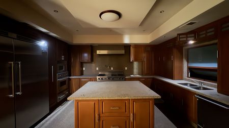 Cocina integral amplia con acabados de lujo.
