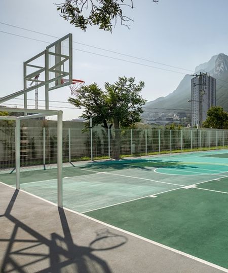 Amenidades exteriores, Drop off, Terrazas, Vitapista, Zonas Acuaticas (Alberca y Chapoteadero, Asoleaderos y Palapa), Centros Culinarios, Gimnasio al aire libre, Cancha Polivalente, Parque Canino, Juegos Infantiles y Auditorio al Aire Libre.