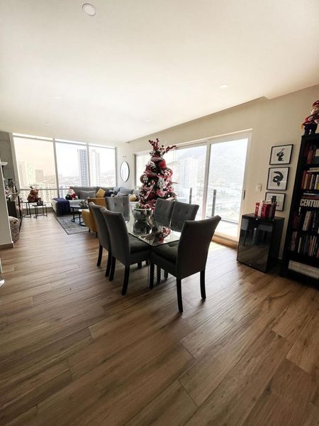 Departamento en venta , ideal inversionistas, total seguridad, lujo y comodidad, de muy amplios espacios, y con las vistas mas espectaculares a la Sierra Madre y a la Huasteca, cuenta con area de sala comedor, cocina integral equipada, con barra, area de terraza, cuenta con 3 recamaras cada una con closet de pared y baño completo, baño de visitas,