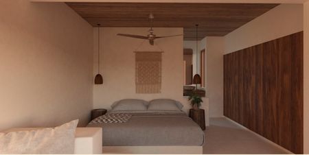 El departamento cuenta con una habitación totalmente espaciosa con baño propio, sala, comedor con cocina y Terraza