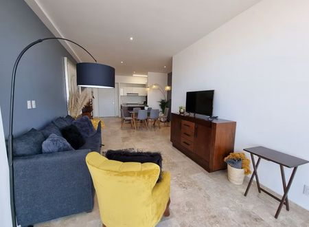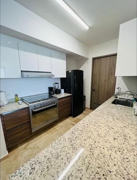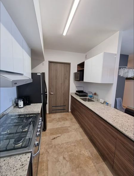 Totalmente amueblado, cocina equipada, barra desayunador, comedor para cuatro personas .