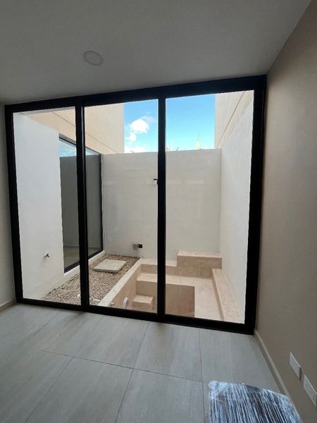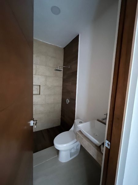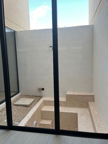 - Fachada con pasta tipo chukum y cerámica tipo madera