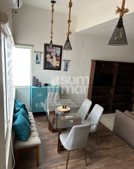 Está amueblado con lo esencial para una estancia práctica: minisplit frío/calor, cocina integral con cubierta de granito, refrigerador, microondas, y un calentador de pared para los días más frescos. Además, cuenta con un amplio clóset, antecomedor perfecto para comidas rápidas o cenas tranquilas, y un espacio de oficina con escritorio y silla ejecutiva para trabajar desde casa sin complicaciones.