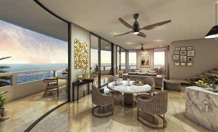 Departamento de dos recámaras frente al mar, en Telchac Puerto, en el kilómetro 35.6. Esta ubicado en complejo de 64 departamentos con un concepto único que crea a través del diseño y la concepción del levantamiento arquitectónico, la sensación de ir en barco en alta mar donde cada uno delos departamentos se funde en las velas que sopla el viento.