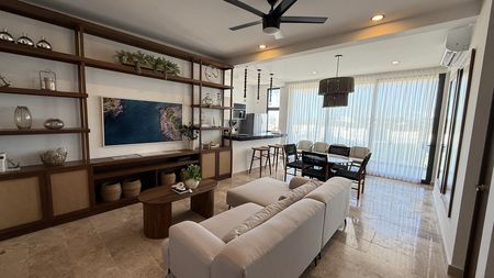 Amenidades: Grill zone, Yoga zone, Gym, Piscina cenote, Alberca con canal de nado, Sauna, Cava privada en bar, Área de juegos para niños, Restaurante bar, Cancha de volleyball, Elevadores, Lobby/recepción