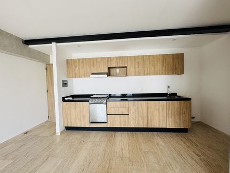 Departamento exterior amplio, iluminado, con ventanales de piso a techo, la estancia es muy smplia con cocina abierta.