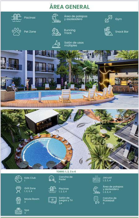 * Cancha de Pickleball * Pet Zone * Snack Bar