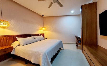 Este departamento disponible para venta se ofrece a un precio de $5,250,000 MXN. La propiedad cuenta con 62 m² con una recámara y dos baños completos, es perfecto para parejas o solteros. Está totalmente amueblado e incluye cocina equipada, aires acondicionados, una pequeña bodega y un estacionamiento techado. El condominio Taheima cuenta con dos albercas grandes con jacuzzi y tiene vigilancia 24/7, garantizando seguridad y comodidad.
