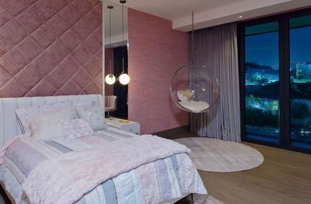 La recámara principal tiene una chimenea de etanol para separar la majestuosa cama de la sala privada que se comunica con la terraza.