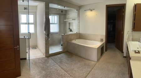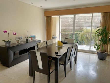El departamento se encuentra en el tercer nivel, Techos muy altos, Vista a áreas verdes, Acabados de lujo, 3 Recámaras con vestidor y baño completo (Recámara Principal muy amplia con sala y terraza), Estudio muy amplio con área de TV y Trabajo, Oficina, Sala, Comedor, Antecomedor con terraza, Cuarto de Servicio, Cuarto de Lavado, Bodega dentro del departamento, Calefacción, Elevador directo al departamento, 5 lugares de estacionamiento.