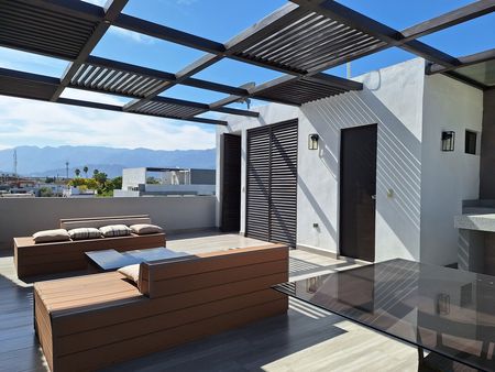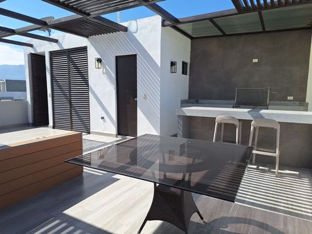 Magnífica opción de departamento tipo Penthouse completamente terminado. Consta de dos recámaras y dos baños. Amplios espacios de sala comedor, cocina, closet de lavandería. Recámara principal con baño completo; recámara secundaria, baño completo compartido con el área social. Extensa terraza privada tipo roof top pergolado, con área de asador, barra y medio baño. Cuenta con disponibilidad de servicios de agua, luz y gas. Dos cajones exclusivos de estacionamiento. Acceso controlado y vigilancia. El complejo tiene amenidades como jardines, alberca, área de juegos infantiles, gimnasio al aire libre, cancha de pádel, pet park y asadores. Ubicación estratégica con excelente conectividad a las principales avenidas del sector de Lindavista.