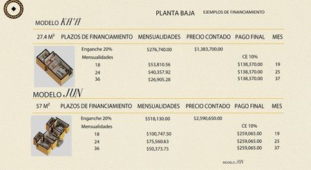 3 tipologías de departamentos de:27.4 m2 modelo KA'A