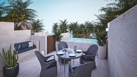 Ubicados en un paraíso frente al mar, estos exclusivos departamentos en **Alba San Benito** ofrecen la combinación perfecta entre comodidad, lujo y naturaleza. Con **102 m²** de construcción, cada unidad está diseñada para brindarte un estilo de vida único, donde podrás disfrutar de vistas panorámicas al mar y al manglar desde tu propio **Roof Top privado**.