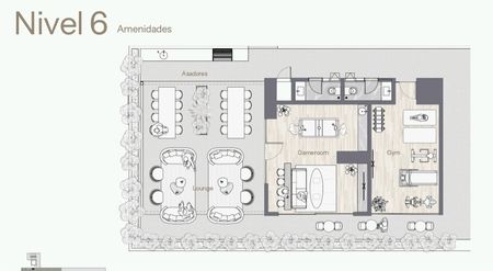 En Nivel 6: Gameroom, Gimnasio muy equipado, Pet Park, area Lounge y Terraza con area de asadores.